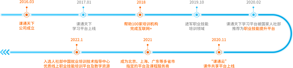 北京课通天下教育科技有限公司(简称课通天下)创立于2016年,是一家从事职业技能提升数字化的国家高新技术企业,公司以“让好课通天下”为使命,致力于打造职业培训生态圈,是国家人社部和北京、上海、广东等多省市指定的平台及课程服务商。