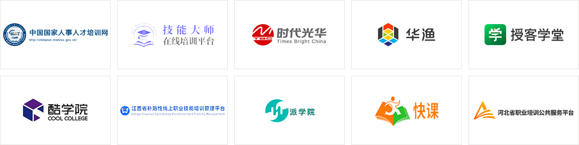 “课通云”通过自建和共享方式已整合200+职业工种课程及1000+企业通用课程,已为国培网、大 能手、时代光华、网龙华渔、授客学堂、酷学院、江西省人社厅职业培训平台、派学院、快课网等数十家培训平台服务商提供课件共享服务。
