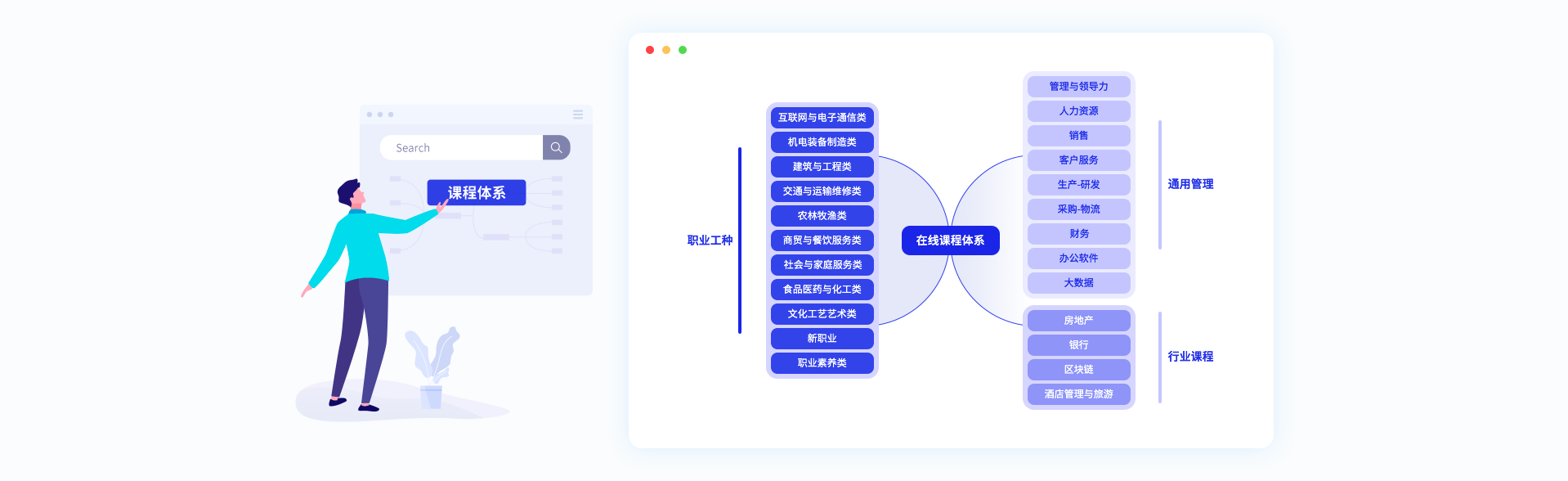 其中,职业工种课程是依据国家职业技能标准,由具备专业资质讲师最新录制的理实一体课程。